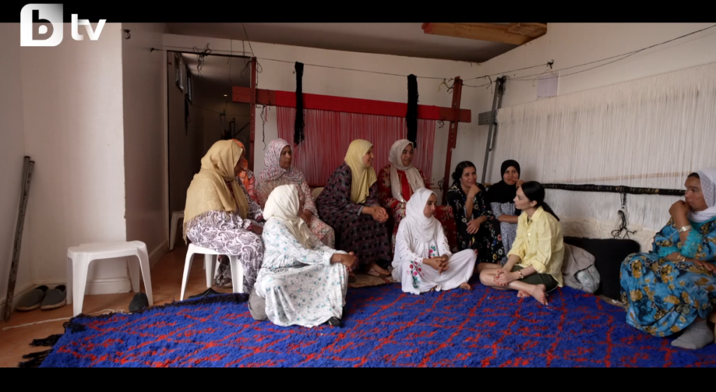 Dans le cadre d’un documentaire sur les femmes du Maroc, d’hier et d’aujourd’hui, la télévision nationale Bulgare nous a rendu visite pour interviewer les tisserandes et filmer une journée de travail à l’atelier.